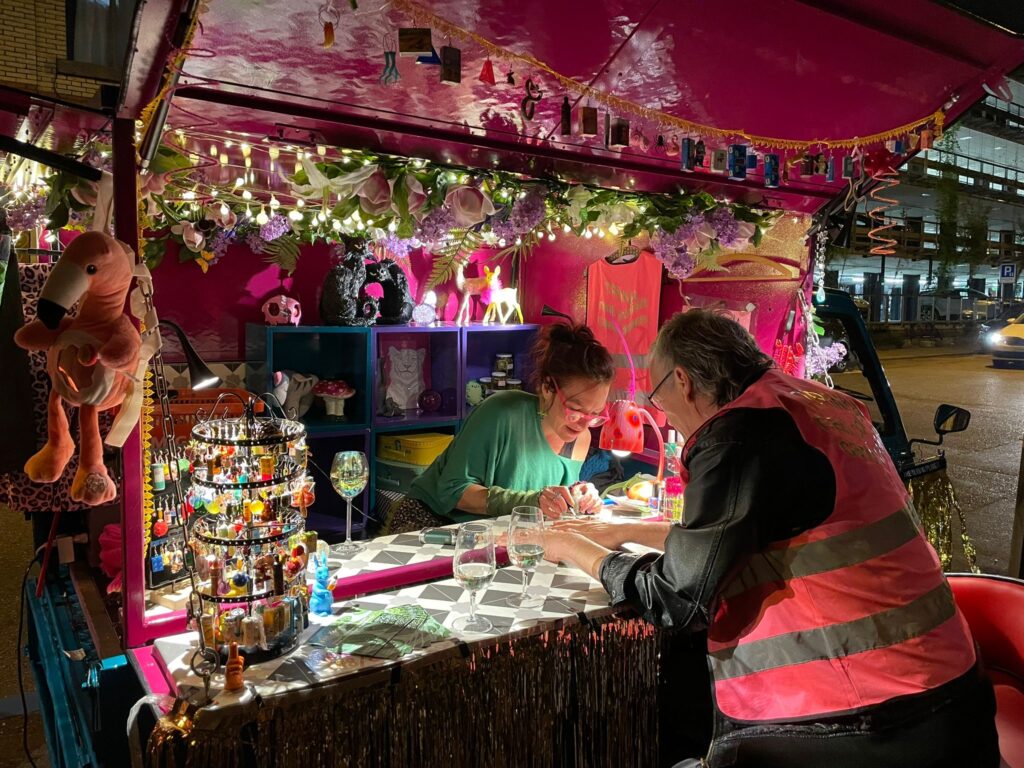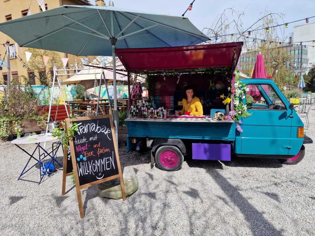 Trina gegen grau in grau präsentiert: trina.bar bringt dir den mobilen Nail Polish Pop-up Stand der Extraklasse. Bereit für ein bisschen Glitzer-Overload und schrillen Kitsch? Gönn dir den ultimativen Lack & Nägel-Marathon, Glitter in your face oder einfach wahnsinnig bolde Ohrringe. Weil wer braucht schon normalen Alltag, wenn man Extravaganz haben kann? Lack & Nägel für die Rebellen von heute!